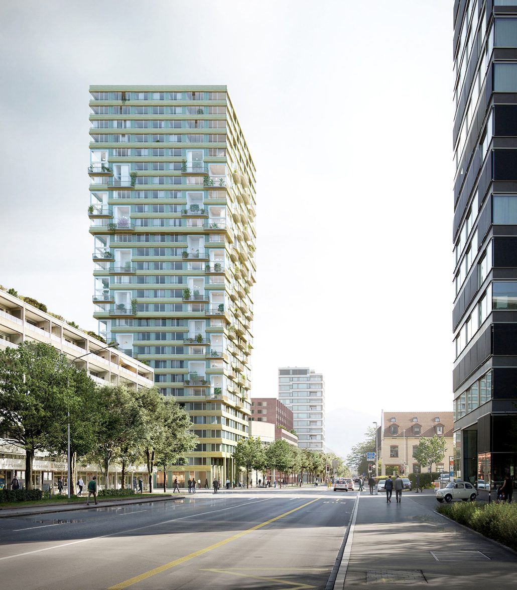 Illustration : le gratte-ciel Pi en ville de Zoug, conçu par Zurich Duplex Architects, atteindra 80 mètres de haut.