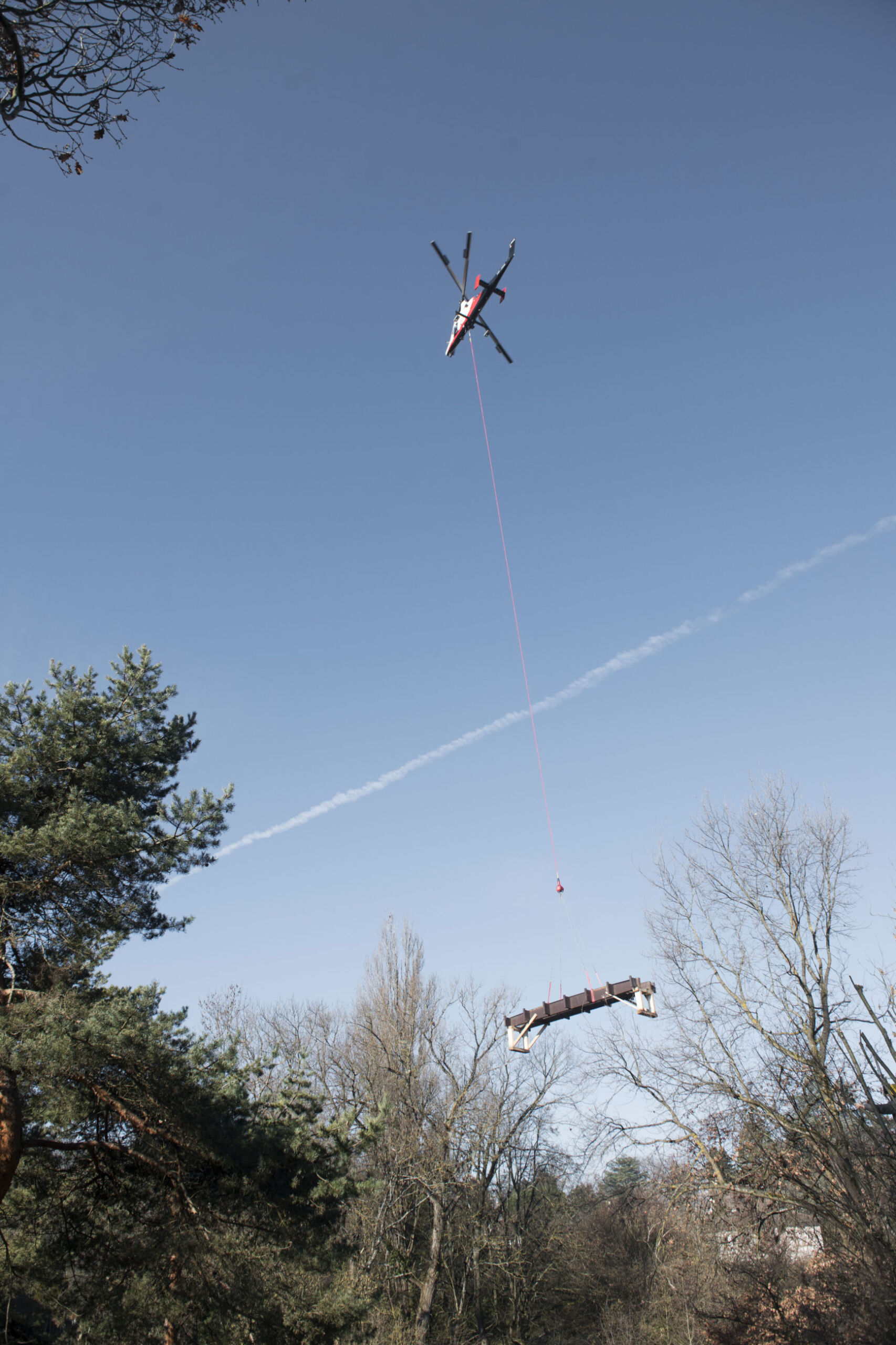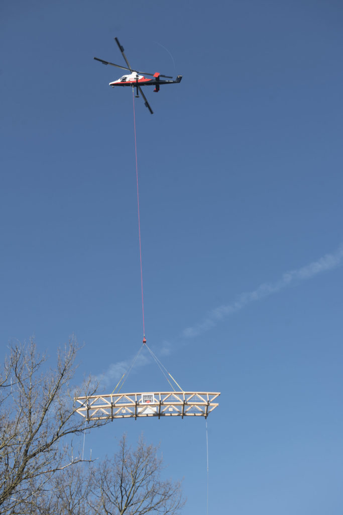 Remplacement d’une passerelle existante par une passerelle triangulée entièrement préfabriquée par héliportage.
